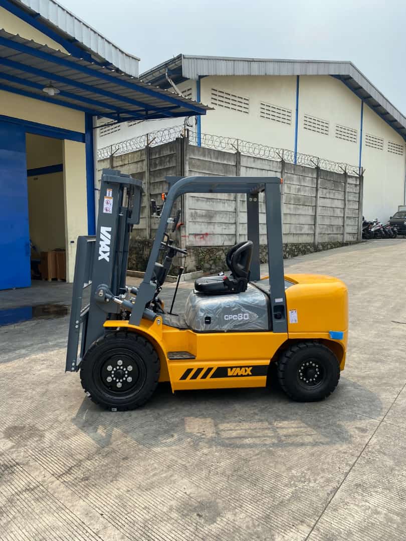 Forklift Diesel VMAX adalah jenis forklift berbahan bakar solar yang dikenal andal, menggunakan mesin diesel Jepang (seperti Isuzu C240, 6BG1) untuk mengangkat beban berat, tersedia dalam berbagai kapasitas (2-16 ton) dan tinggi angkat (3-6 meter), cocok untuk industri seperti gudang, pabrik, dan konstruksi, menawarkan daya tahan kuat dengan harga kompetitif.
